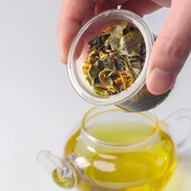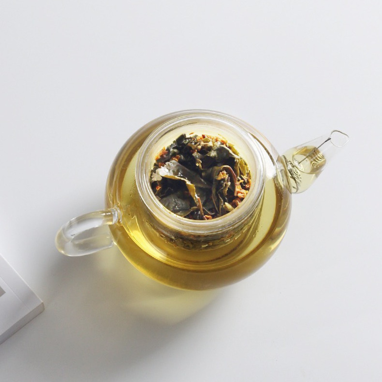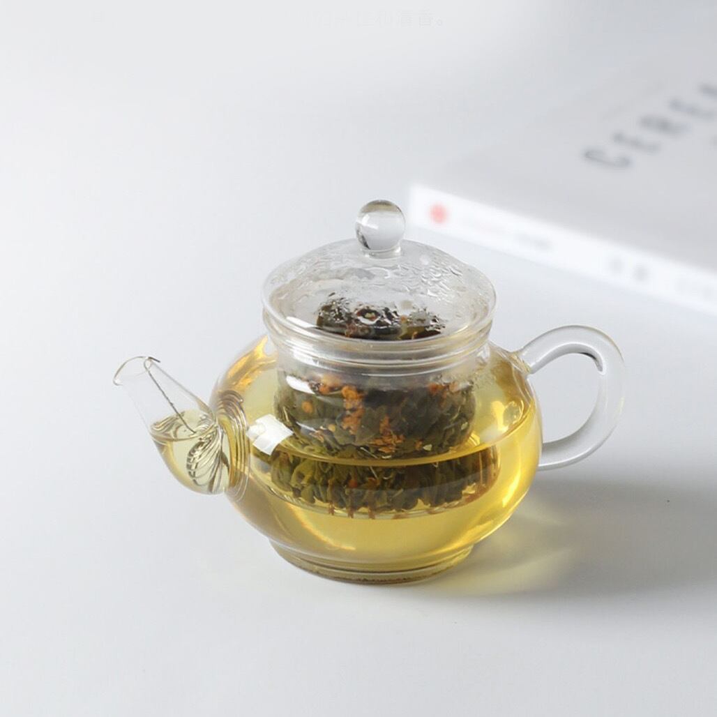 緑茶の中に金木犀の花を入れてお茶に
