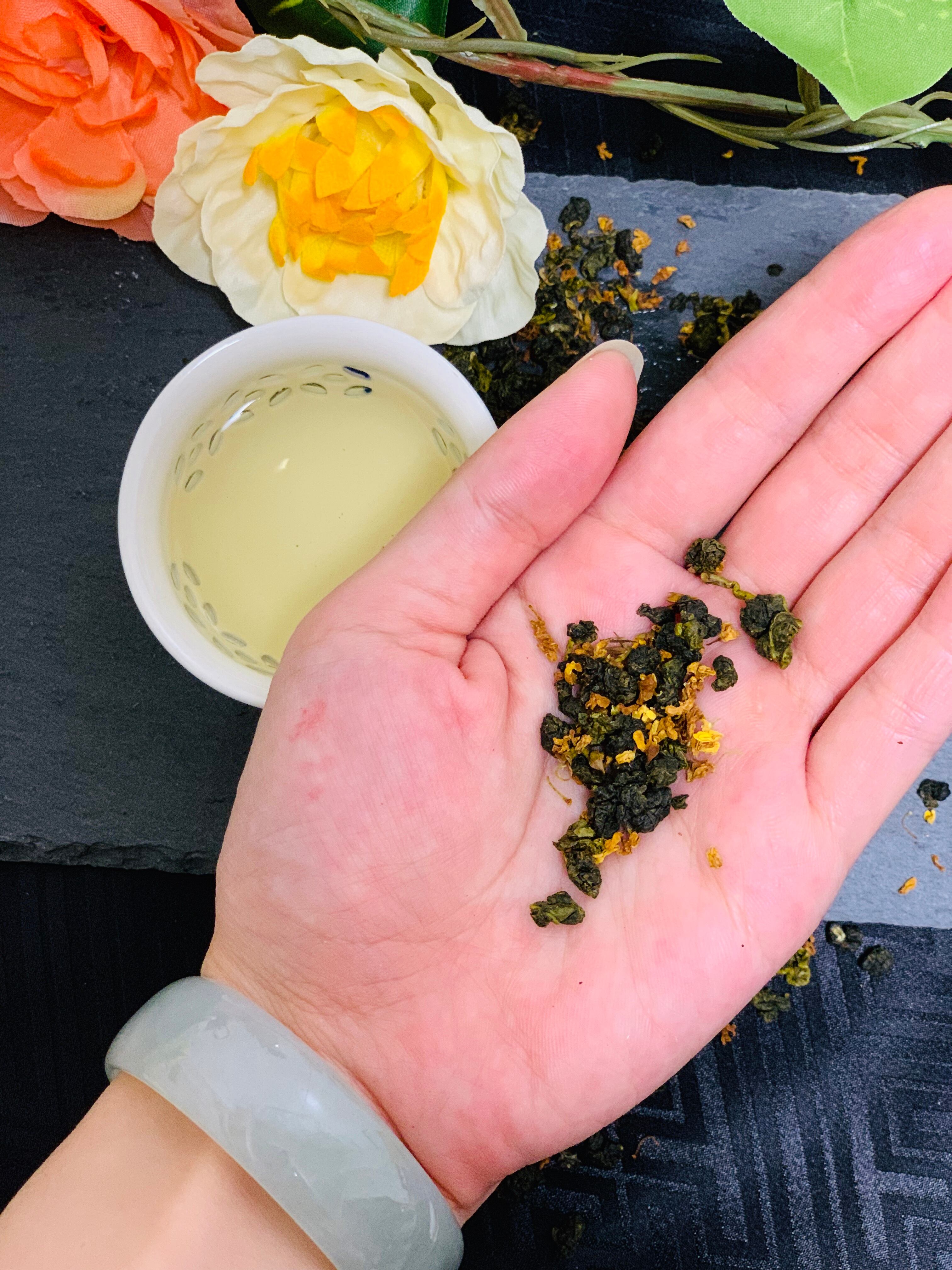 香りを移した高山茶に、金木犀の花弁をドライした