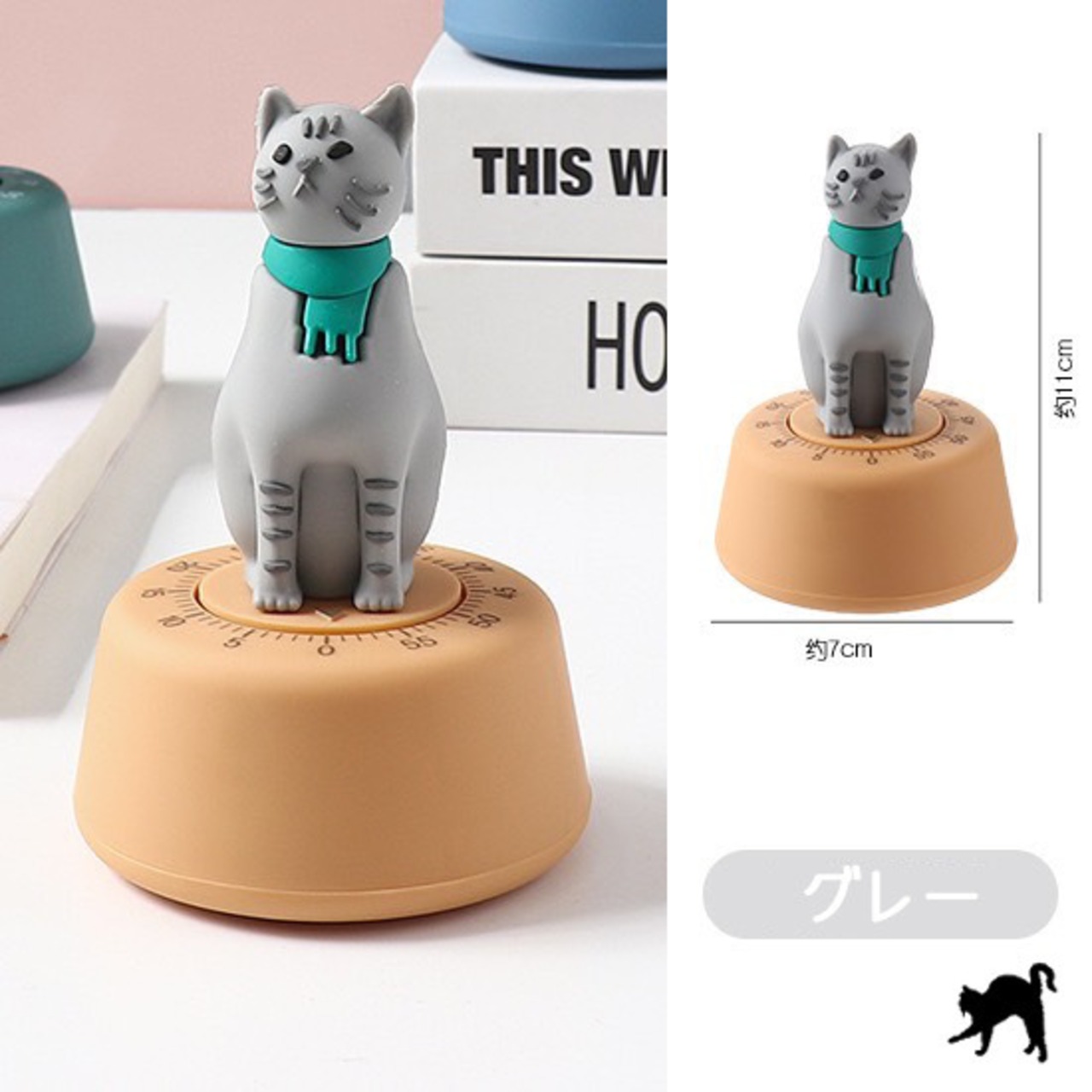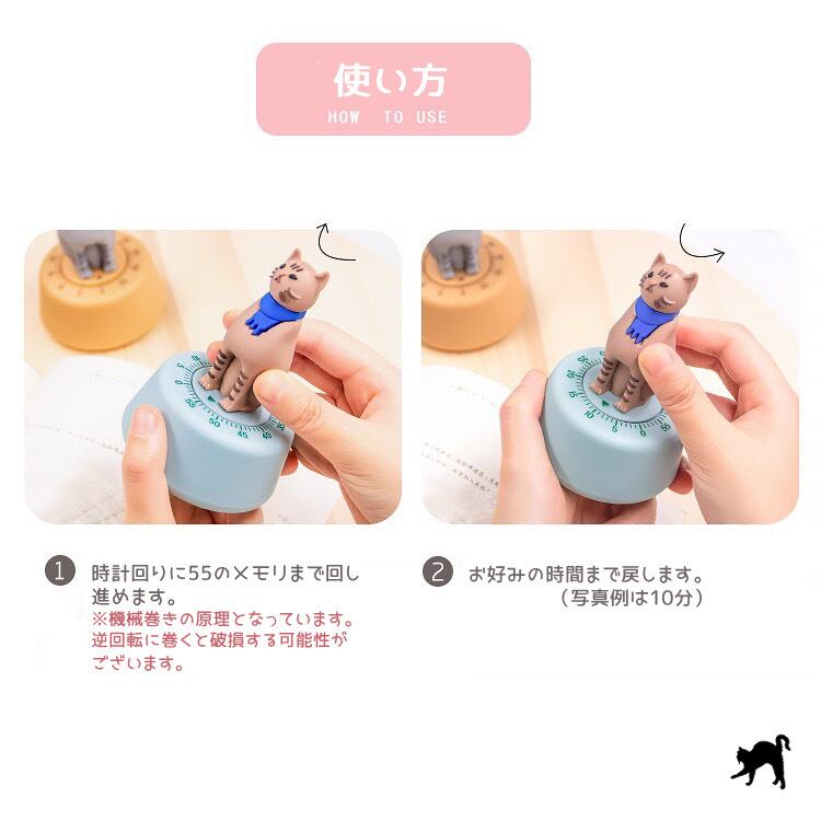 こちらはレトロなにゃんこのデザインがとっても可愛い機械式タイマーとなっております。